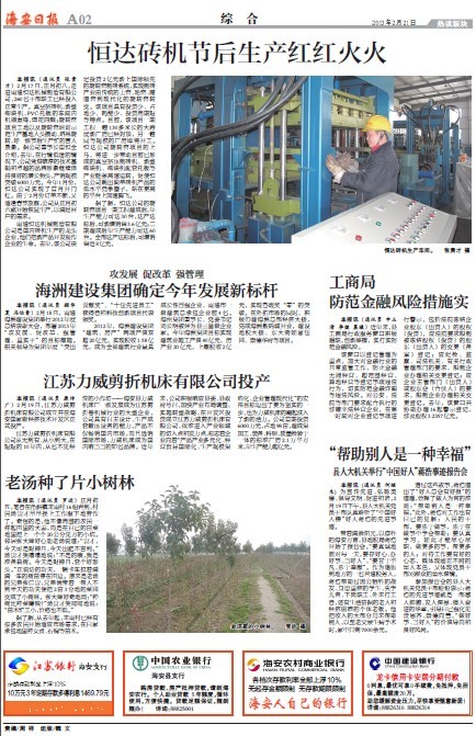 我縣主流媒體《海安日報》也做了相關(guān)報道。