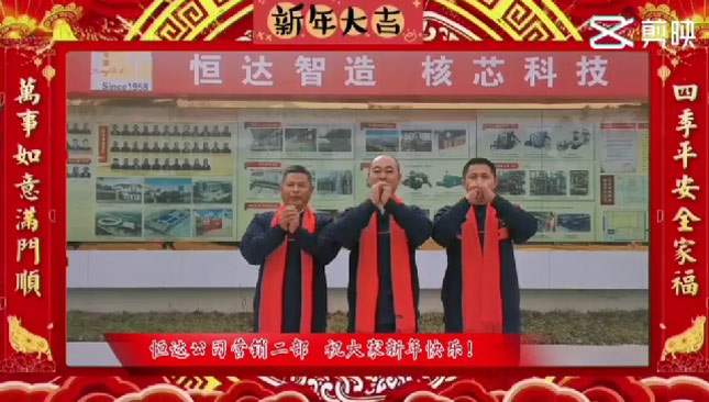 在此新春到來之際,南通恒達(dá)公司董事長崔恒全先生攜全體員工祝大家:芝麻開花節(jié)節(jié)高、百尺竿頭日日升、前程似錦、大展宏圖、萬事如意、心想事成!
